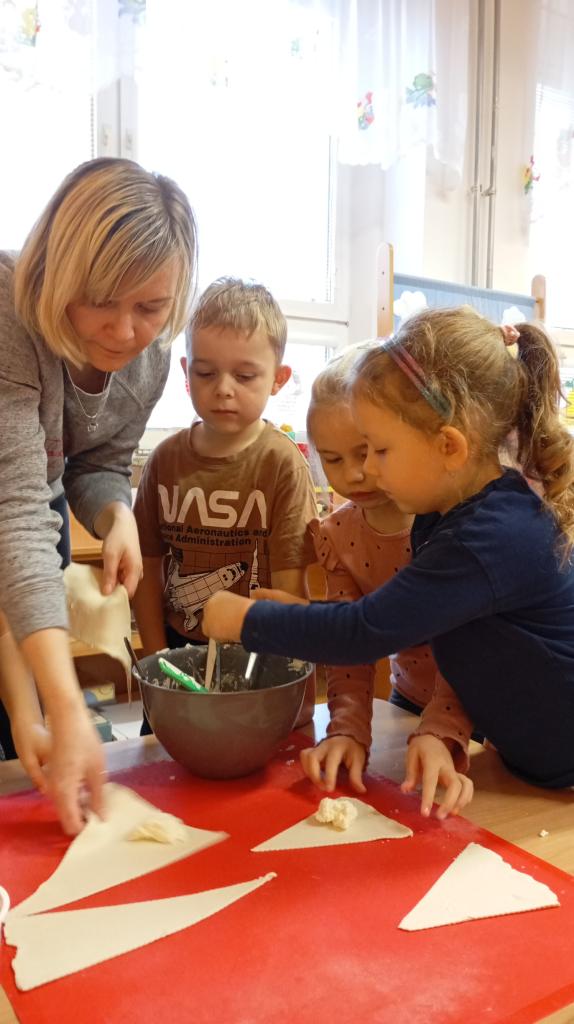 V MŠ jsme si připoměli legendou o sv. Martinovi. Děti příběh nejen poslouchaly, ale také jsme si ho zahráli formou dramatizace. Děti plnily různé úkoly, třídily nebo přiřazovaly. Nechyběly ani tvořivé činnosti. Součástí programu bylo i pečení svatomar. rohlíčků, na kterém se děti také podílely.