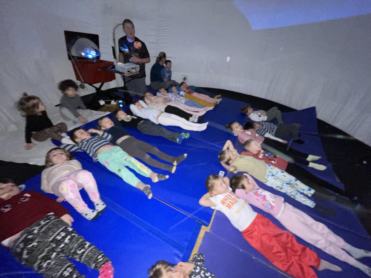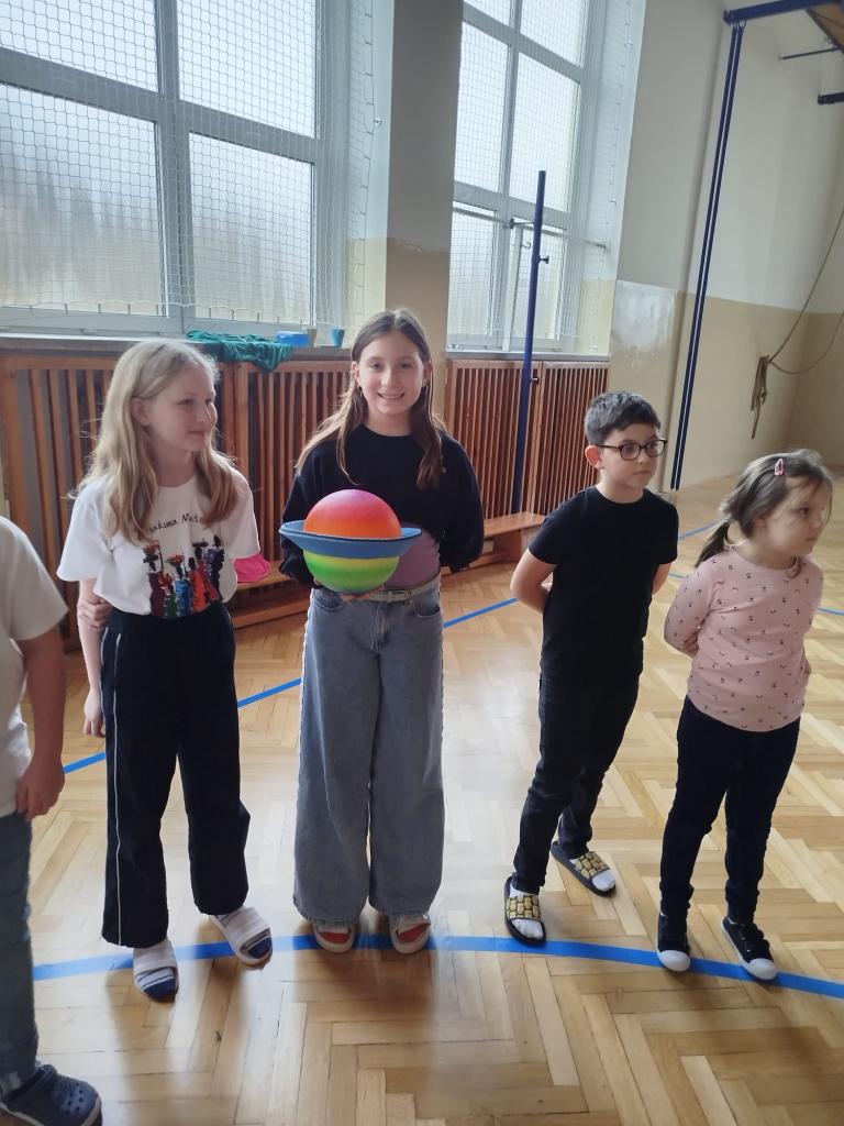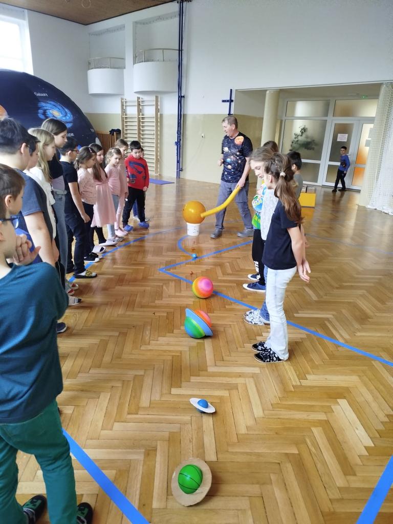 Děti a žáci se v kosmickém stanu dívali na vesmírnou pohádku, pojmenovávali planety a nakonec si v tělocvičně zahrály pohybové hry se zaměřením na vesmír, sluneční soustavu a mléčnou dráhu.