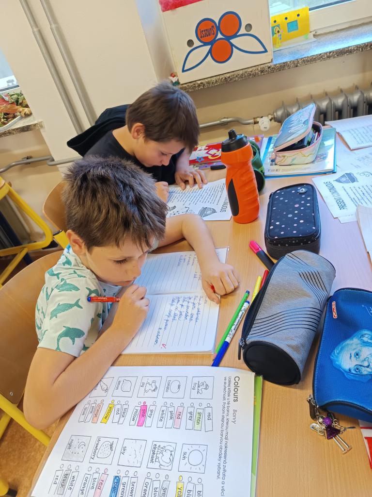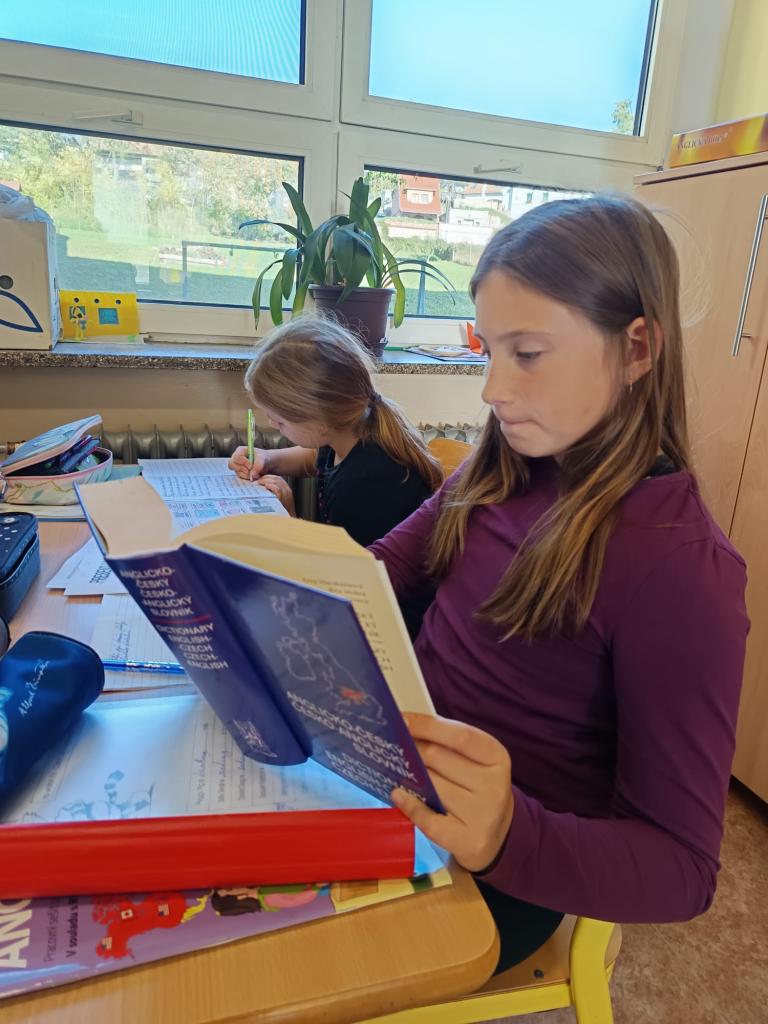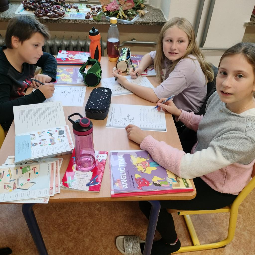 I takhle trávíme hodiny angličtiny, děláme projekty na daná témata a vzájemně se zkoušíme.