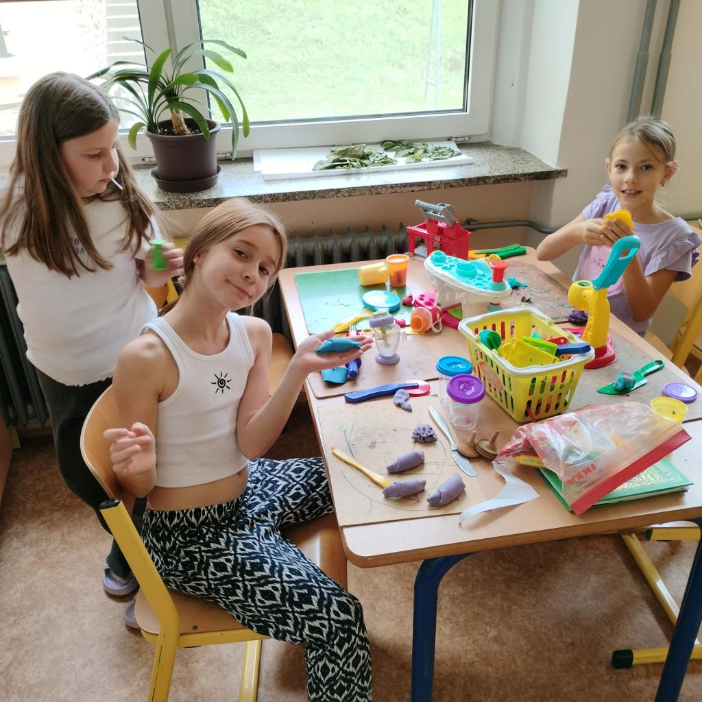 Zatím jsme nakreslili mapu a vlajku, vyrobili malý 3D model Eiffelovy věže z papíru nebo větší model z kostek. Dále se učíme i o francouzské kuchyni, kde z plastelíny tvoříme palačinky, bagety, croissanty a další pochutiny.